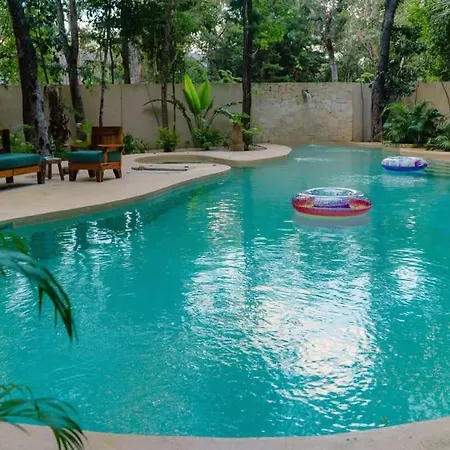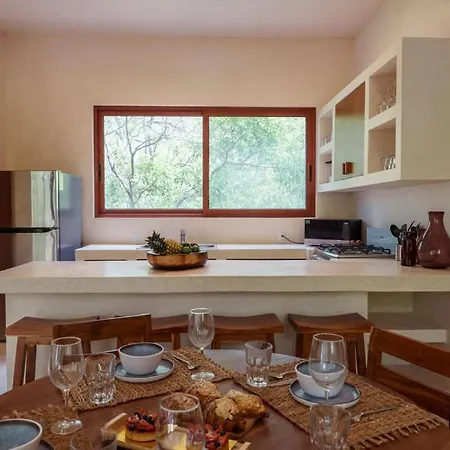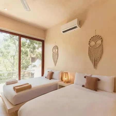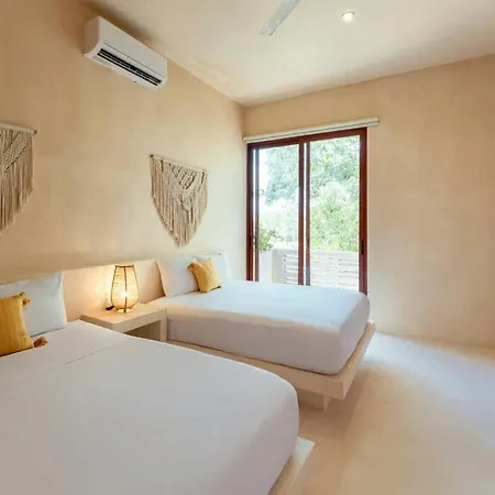 Private 6Br Jungle Compound With Rooftop Pool villa is equipped with a fully furnished kitchen with an oven. Guests are invited to dine at Portal Tulum At Lanka, located approximately 1 km away. The nearest bus stop is Vanes foraneas, in proximity to the Tulum property.